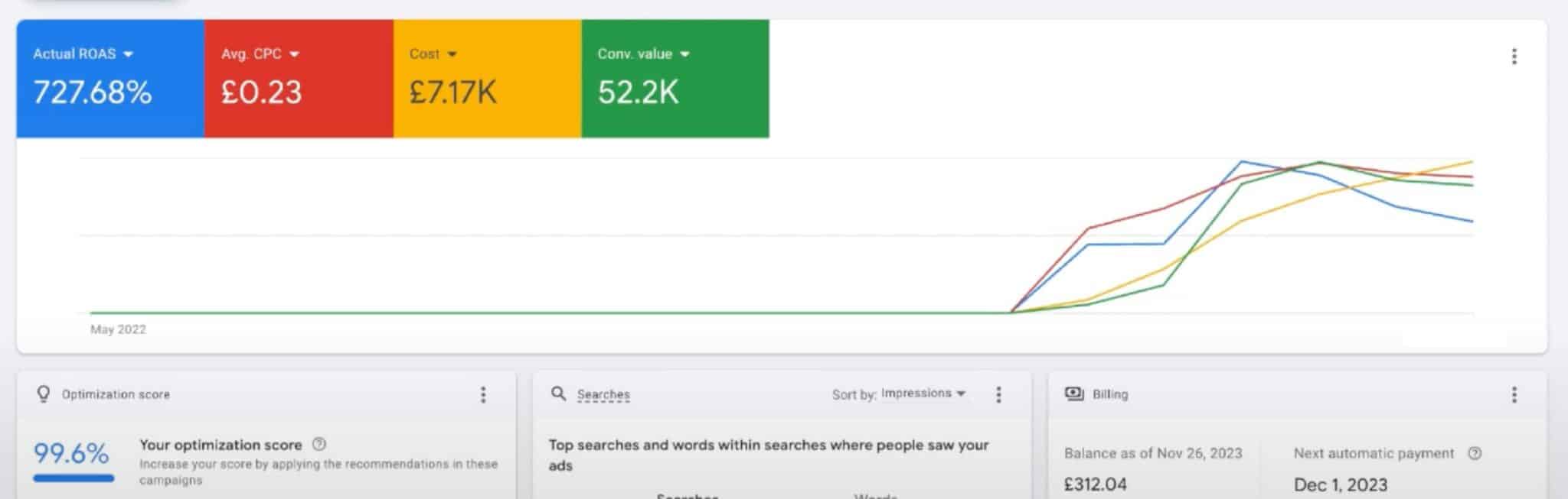 In just a short period, Thrive Converters helped My Performance Part’s grow from a brand-new, zero-sales store into a profitable e-commerce business generating £52K in revenue at 7.28x ROAS.